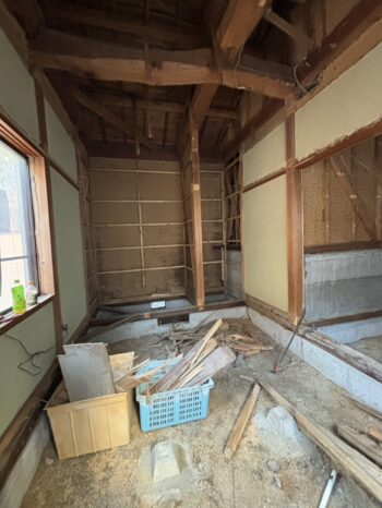 和室の解体後の様子です。しっかりとした梁が掛かっており、なかなか見られない代物です!