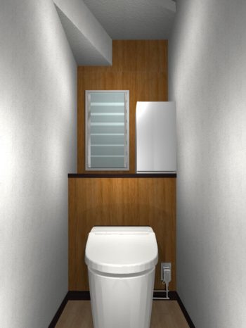 | ご提案内容 | ************************************************** ・タンクレストイレ(全自動)をご提案。 ・収納スペースを作る為に、同作家具の設置。 ・クロス、床の貼替。 ************************************************** 階段下スペースのトイレという事もあり、通常のトイレよりも少し狭く感じたので、タンクレストイレを設置しました。 また、床と壁紙の貼替も行いましたので「床面と奥壁面」を同じ木質調の物で仕上げる事により、狭小スペースにも奥行き感を作る事が出来ました♪ |